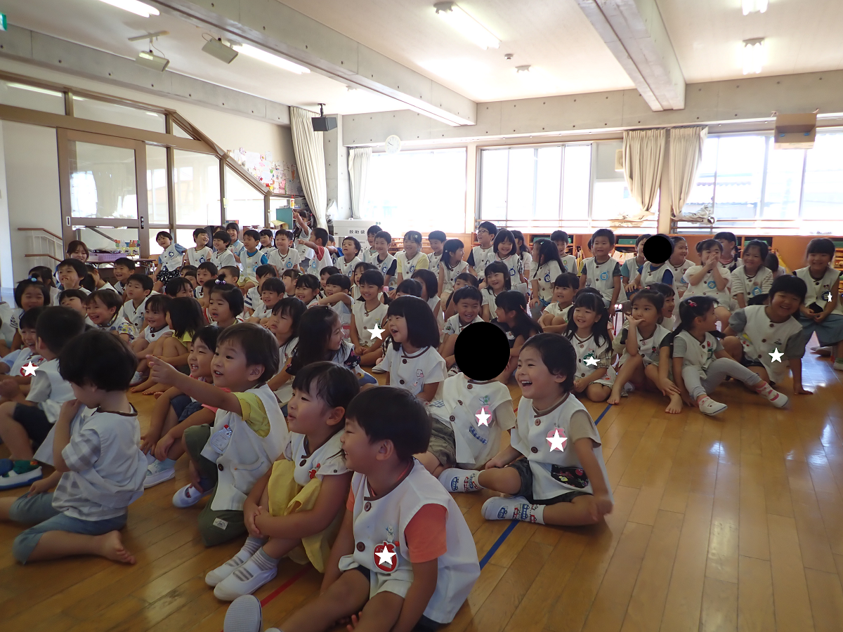 始めに園長先生から、「まるいお月様のように、みんなの心もまるくていつもニコニコできるといいね」とお話してもらいました。