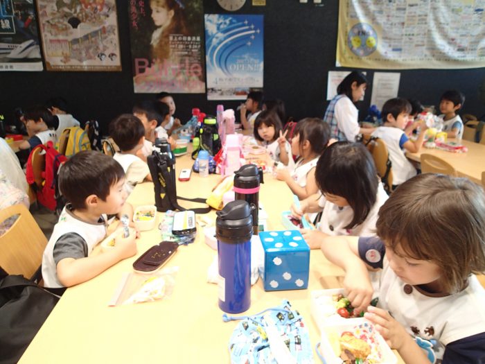 プラネタリウムを見たあとは、お弁当タイム。みんなもりもり食べていましたよ。