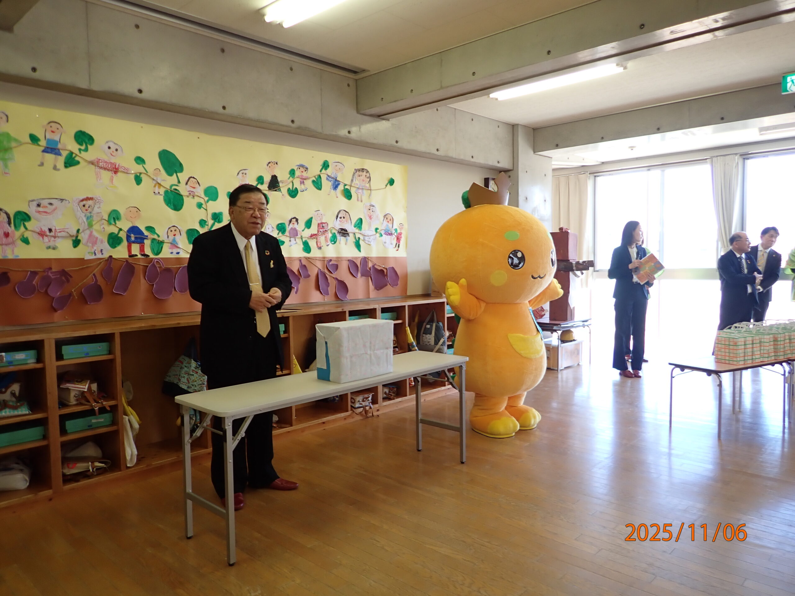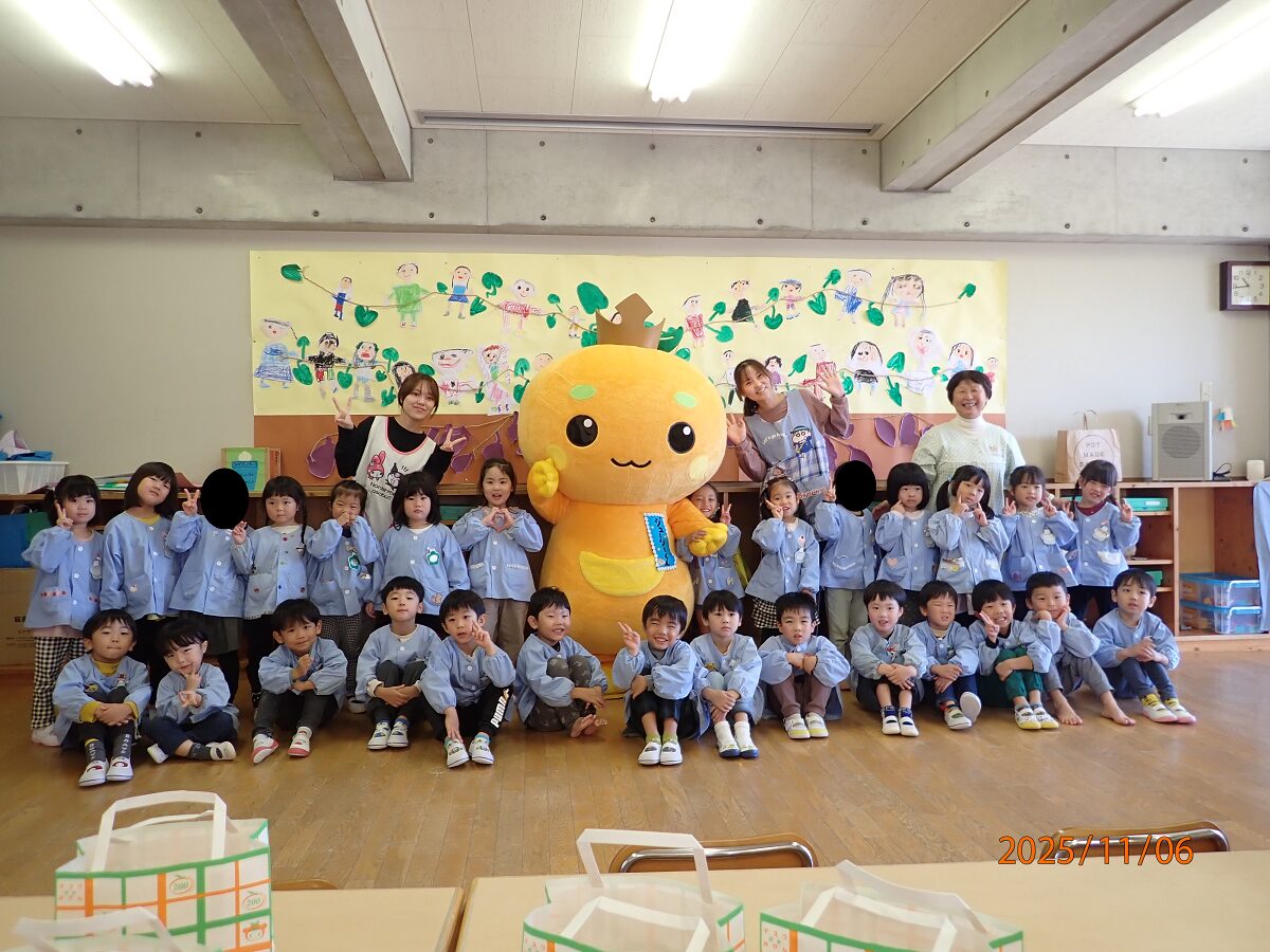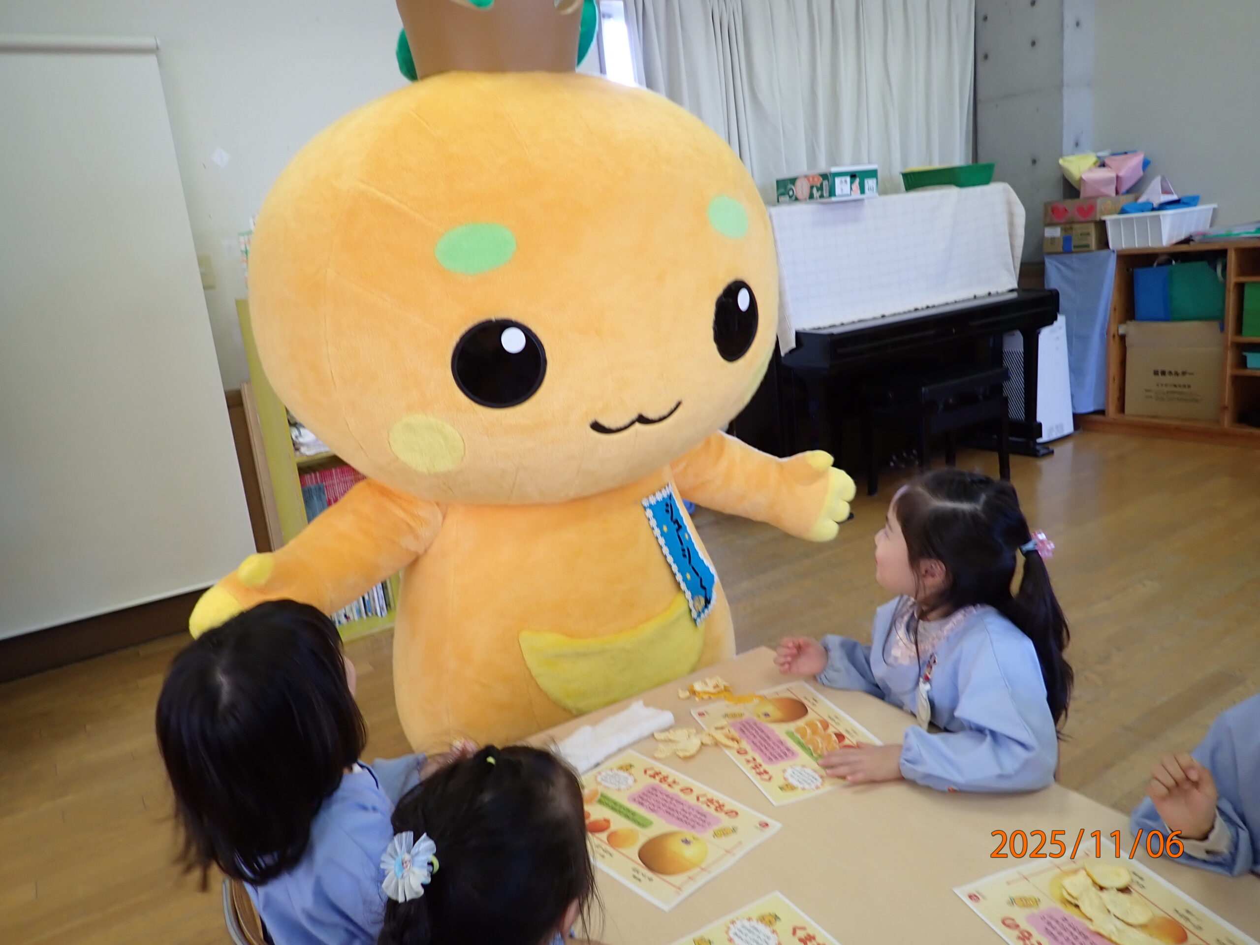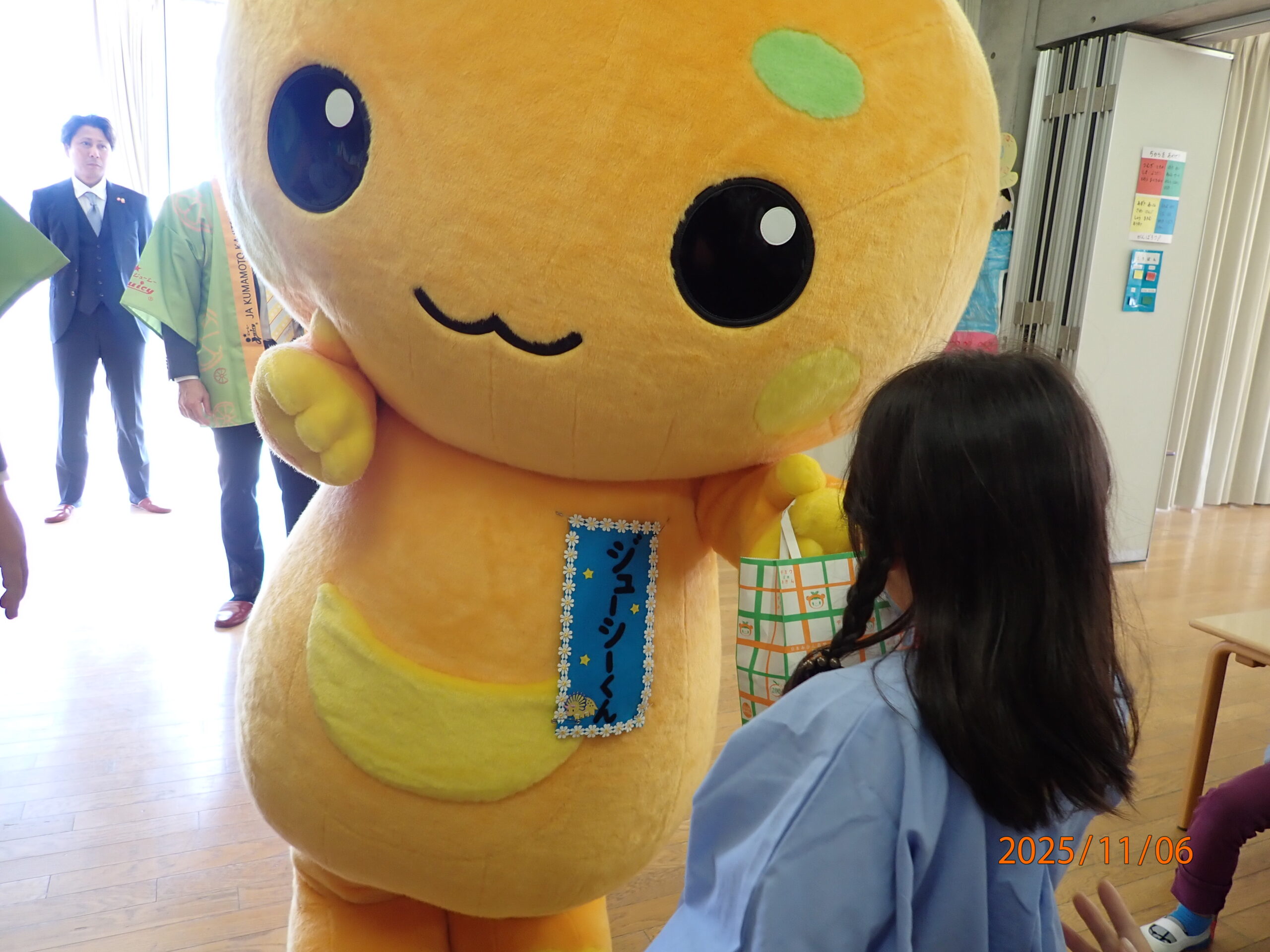 なんとゆるキャラの「ジューシー君」もみんなの為に太閤幼稚園に来てくれました。