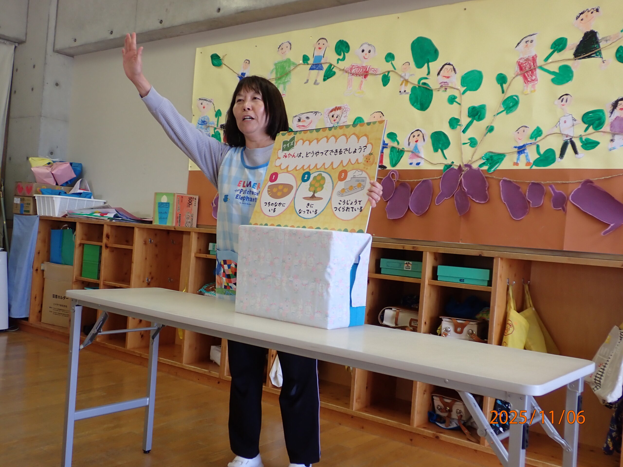 次は先生から「みかんのおはなし」の紙芝居を読んでもらいます。