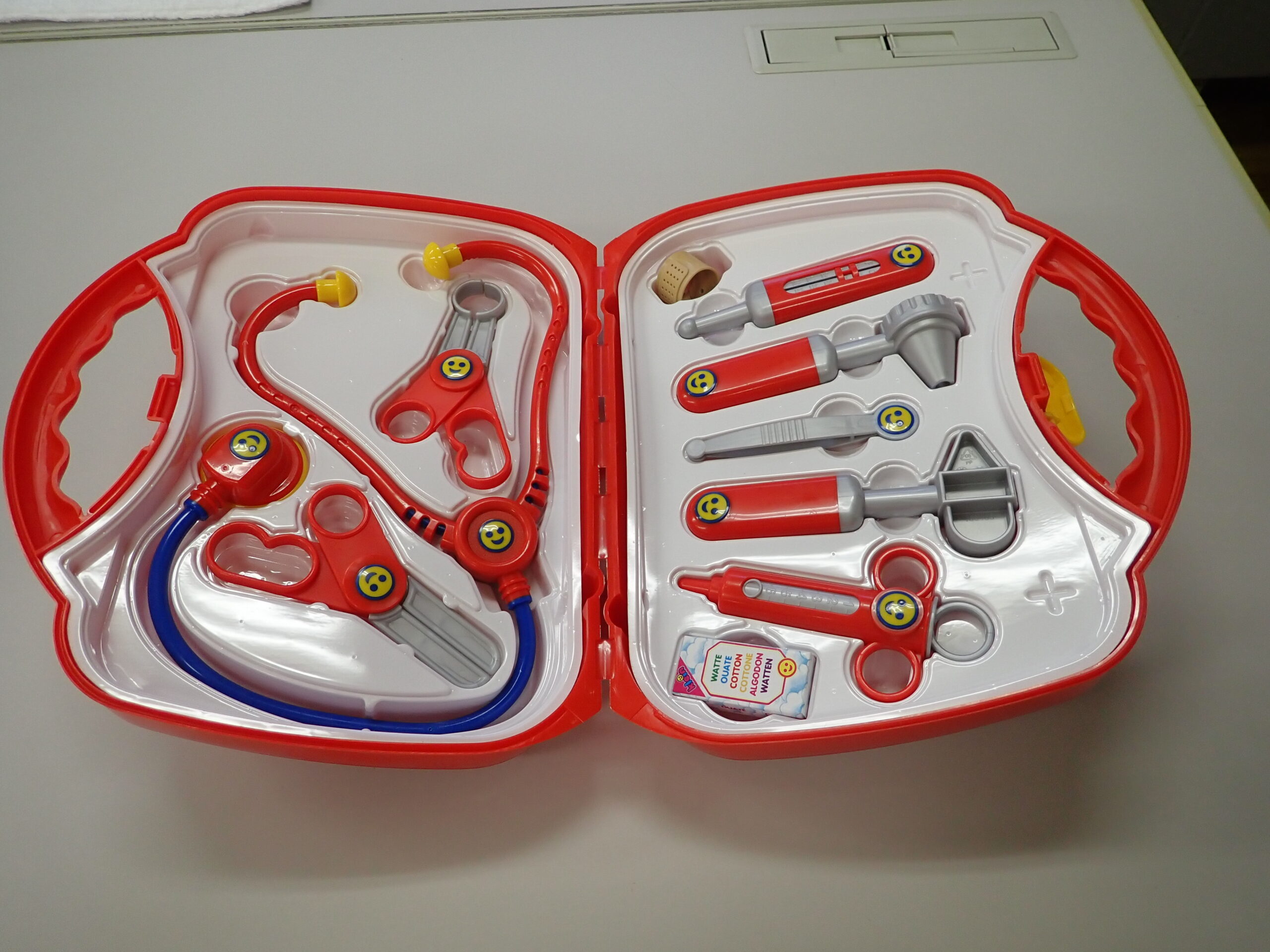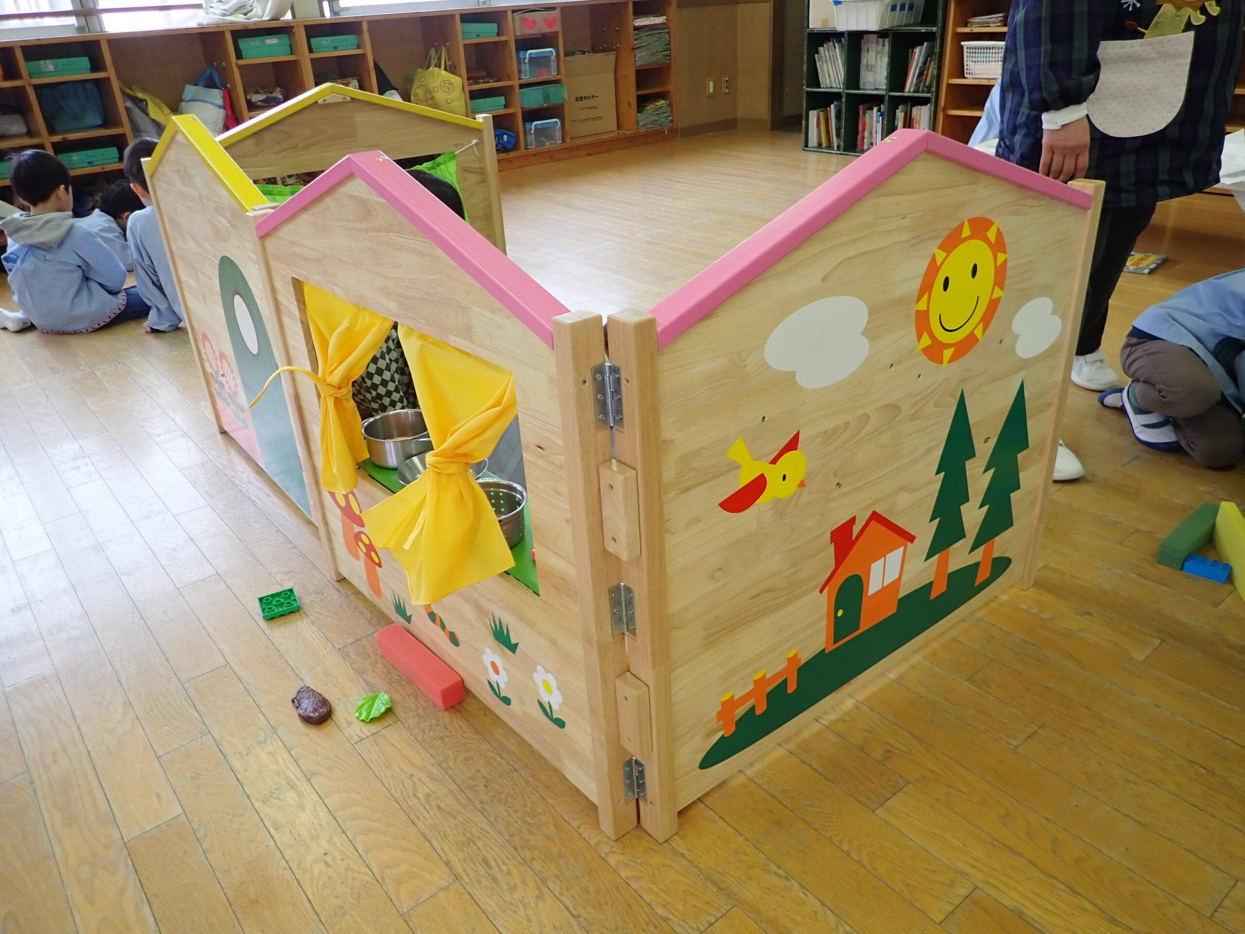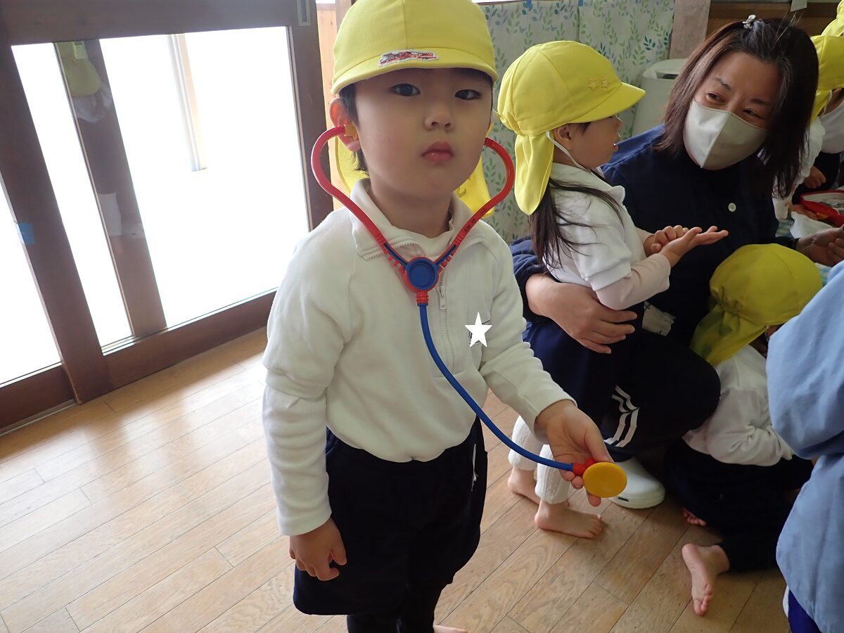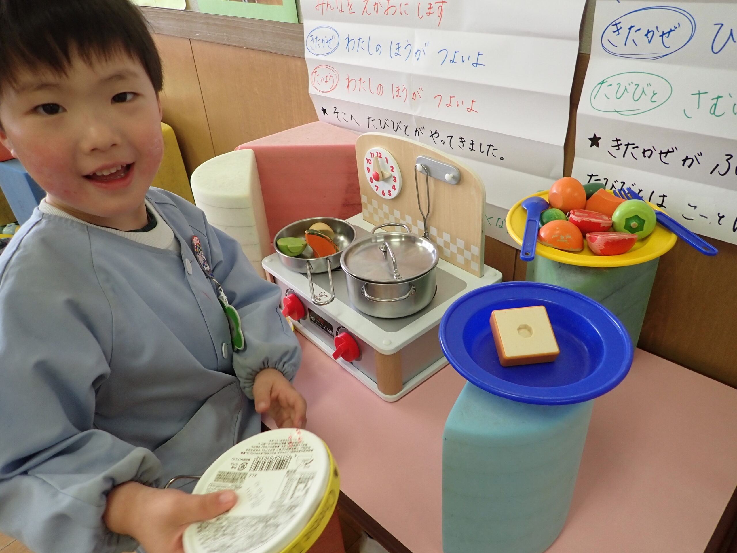 年中組にはお医者さんセットと、ままごとのガスコンロやお買い物レジが新しく入りました。