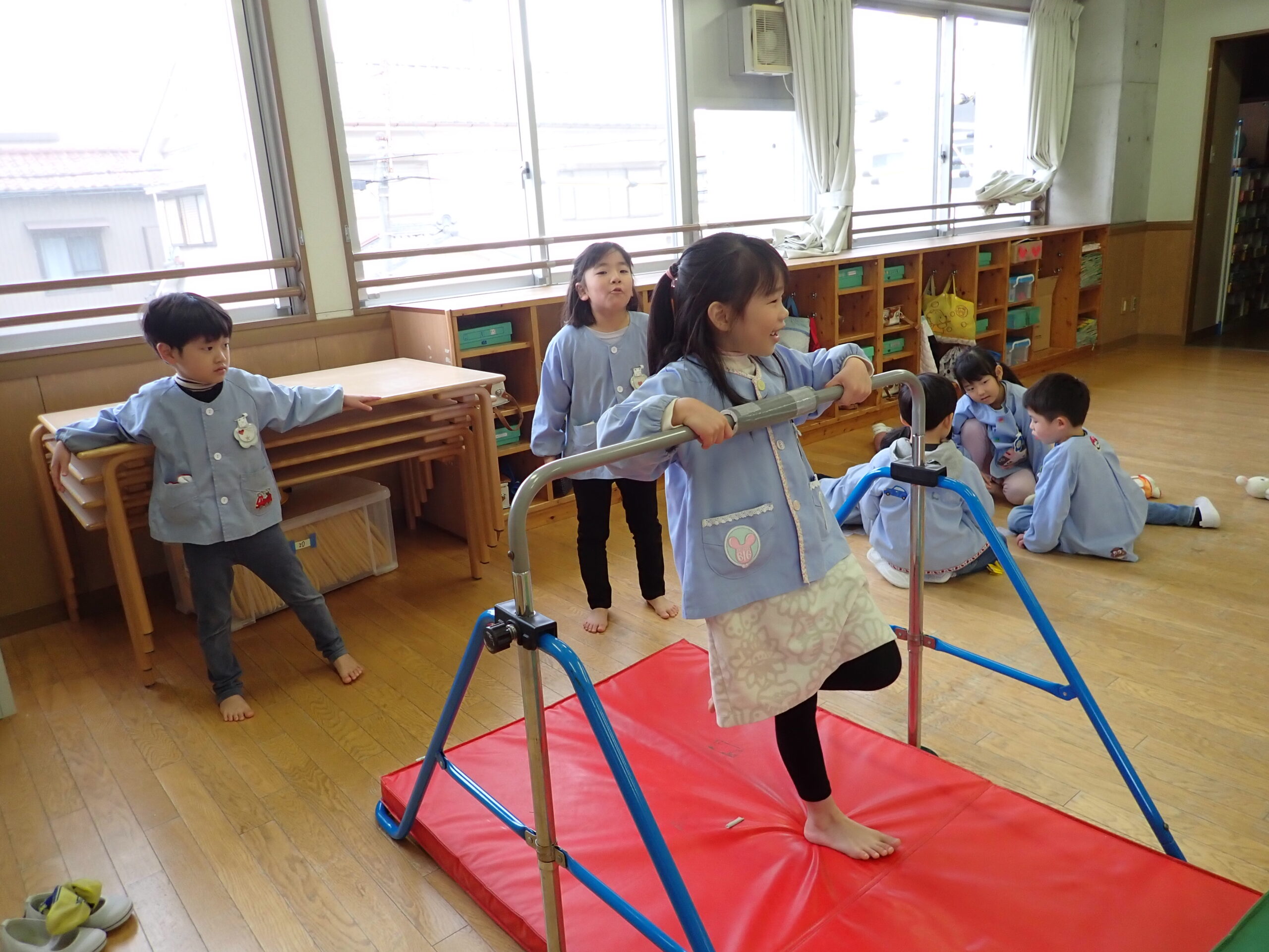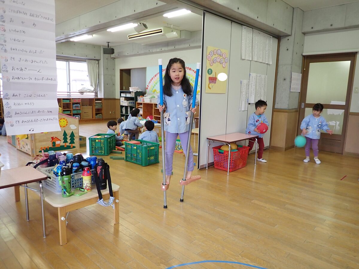 年長組は竹馬や鉄棒・まりつきなどにも挑戦しています。