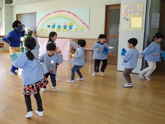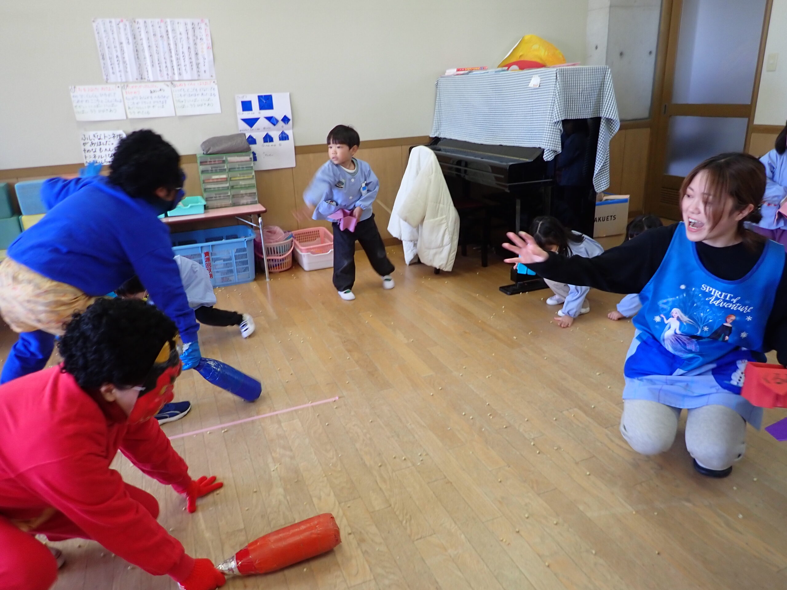 2月3日(火)は、幼稚園中に子どもたちのこのかけ声が響き渡っていました。