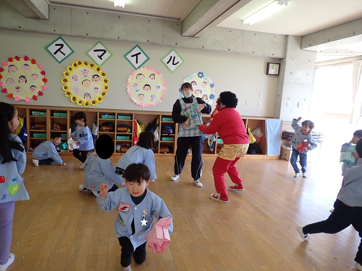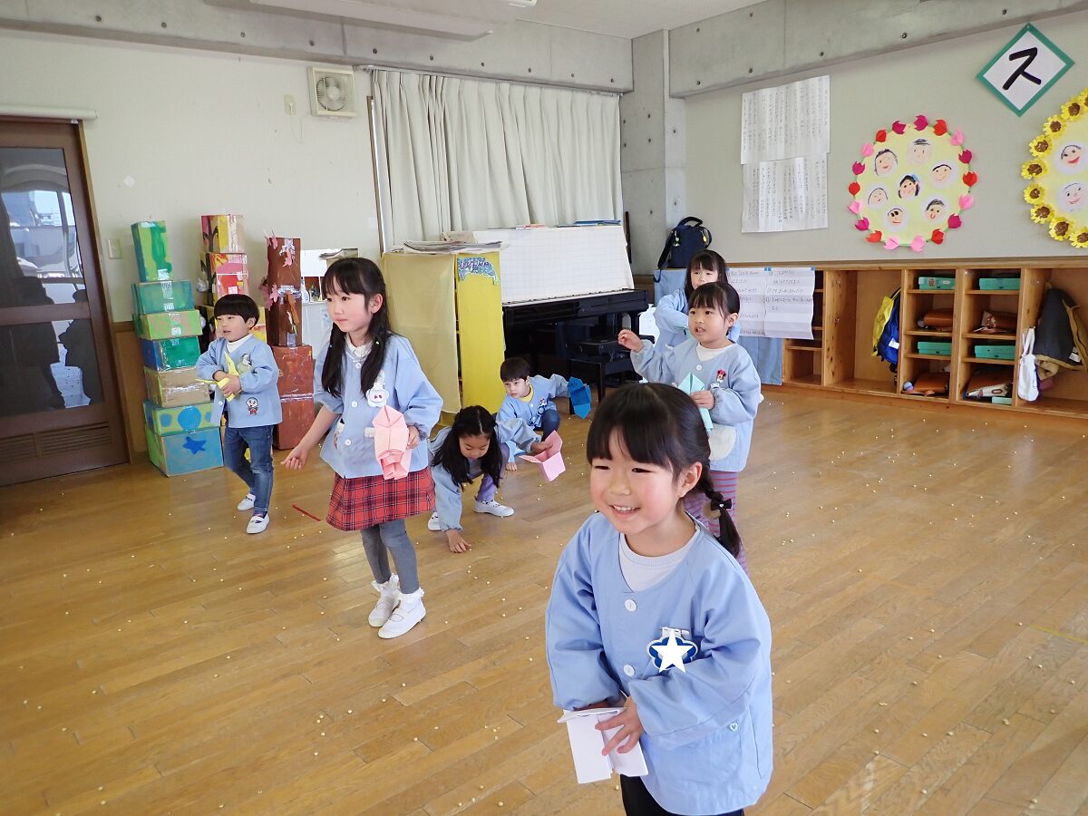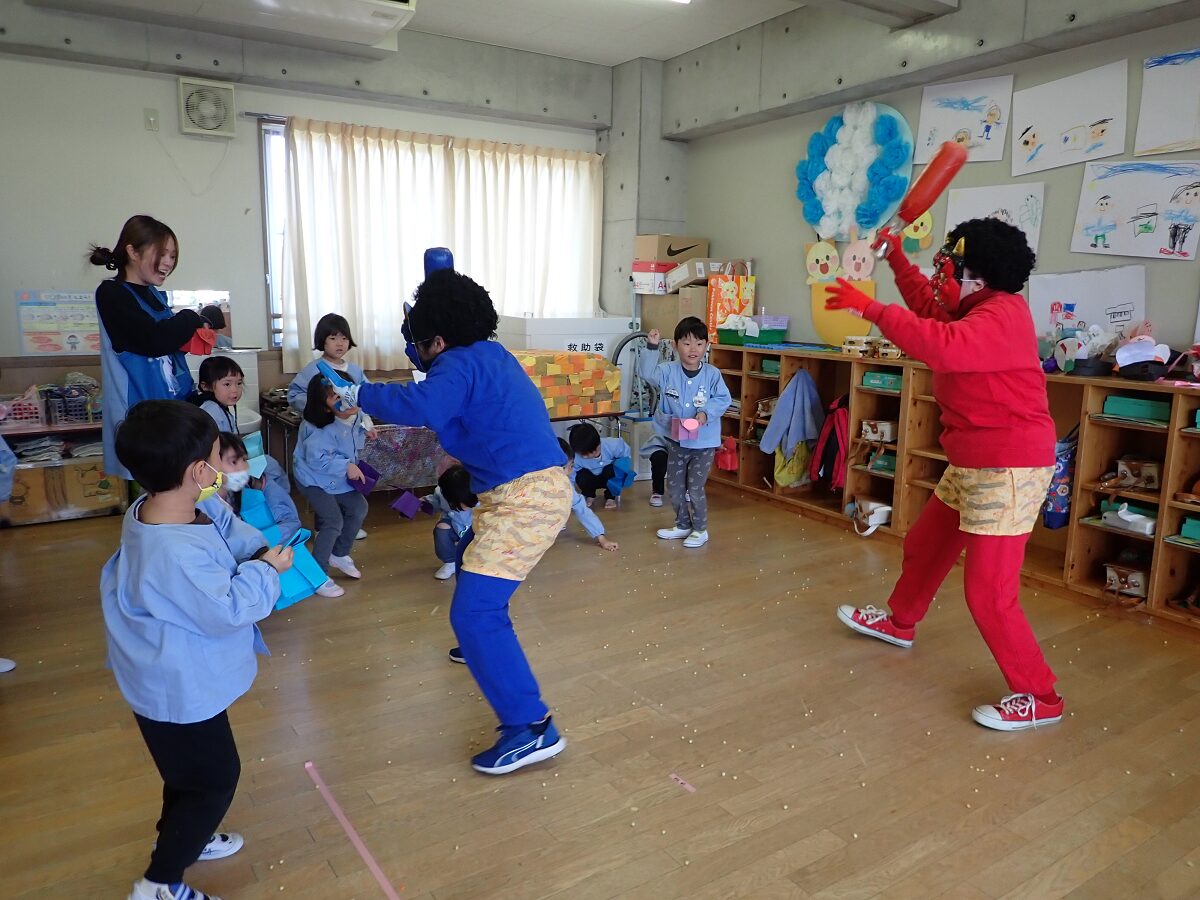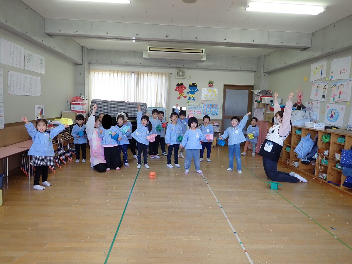 ひよこ組の豆の攻撃にやられて鬼は退散していきました👹