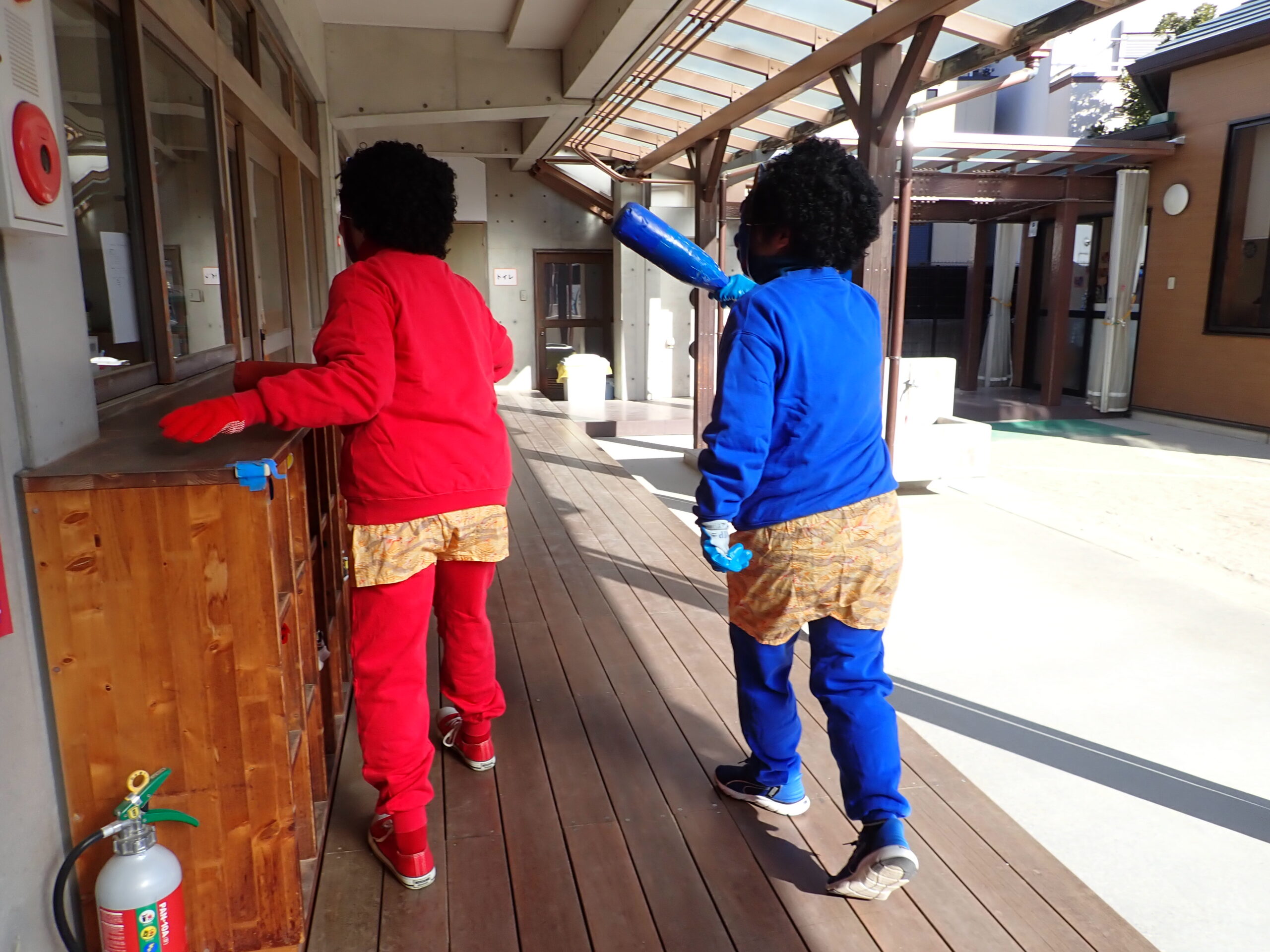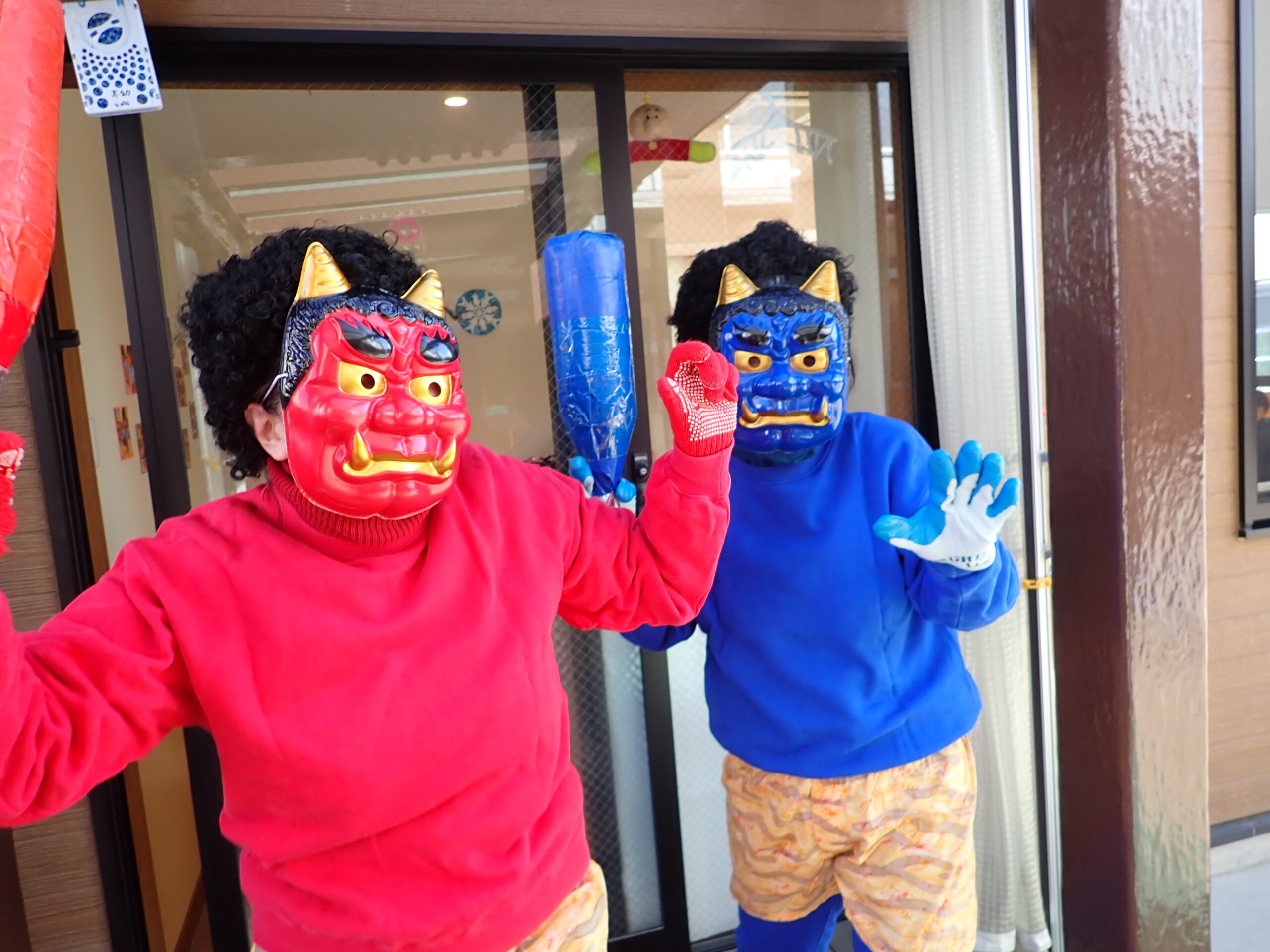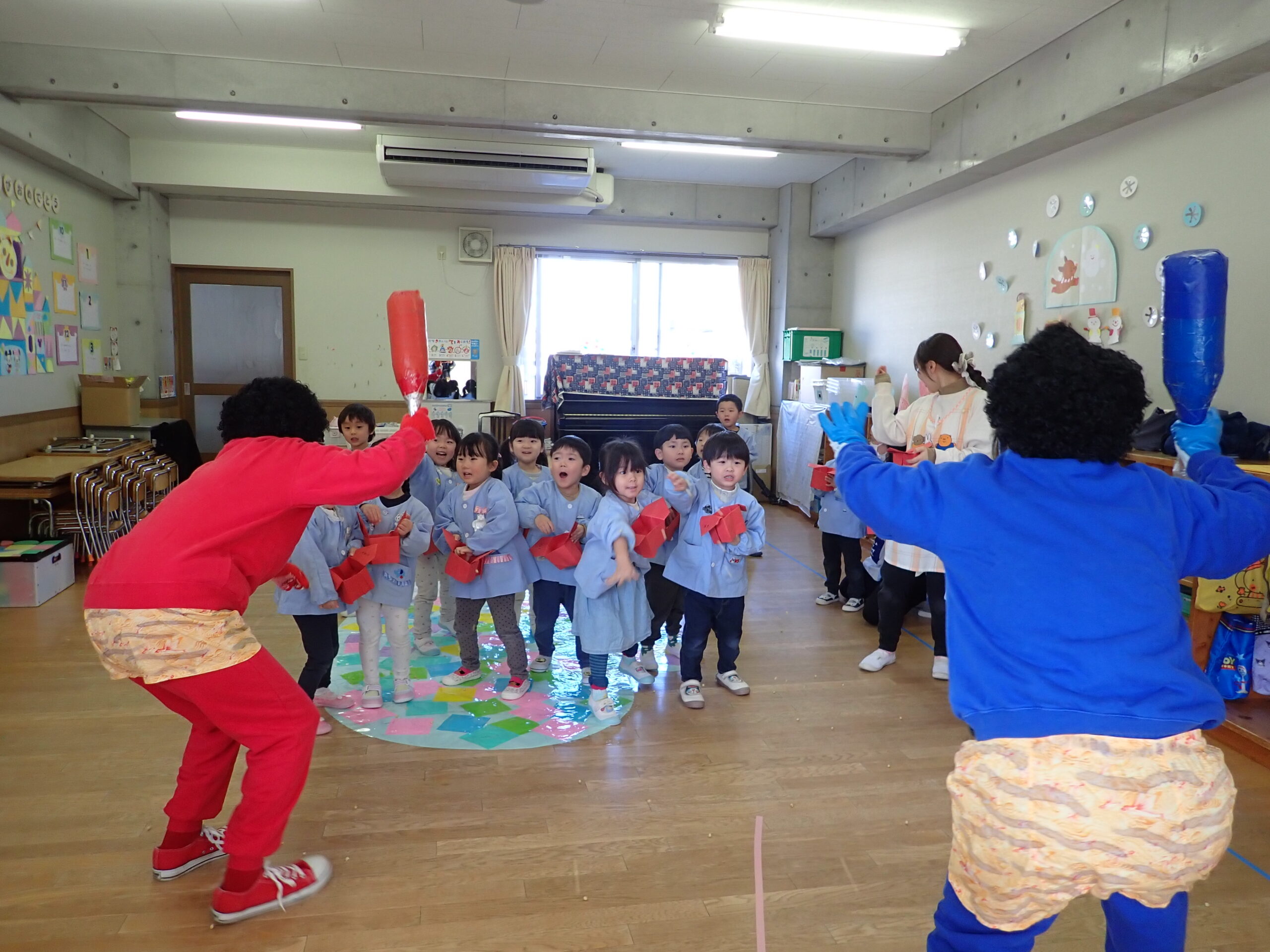 今度は赤鬼と青鬼が登場!年少組のお部屋へ向かっていきます。