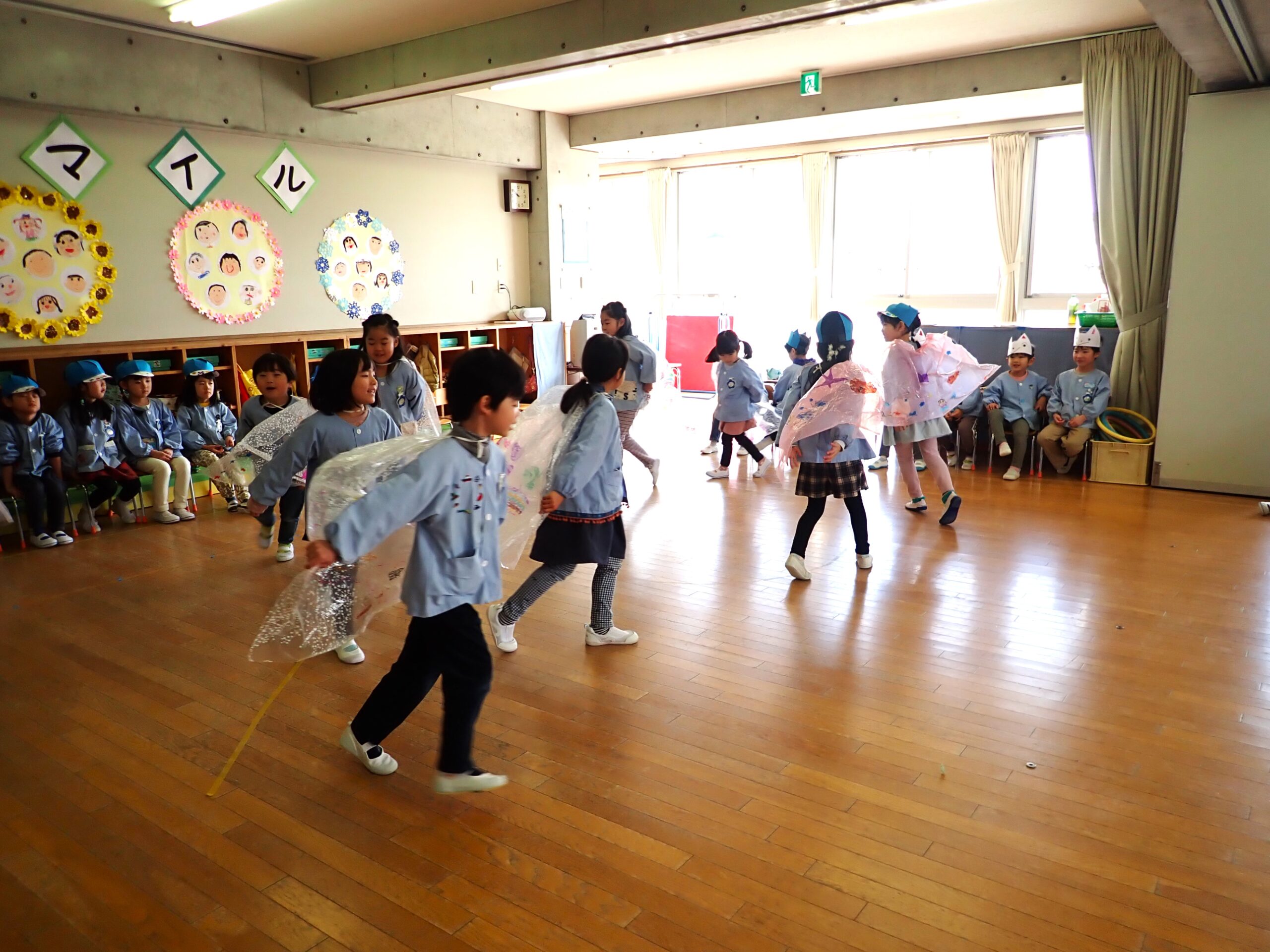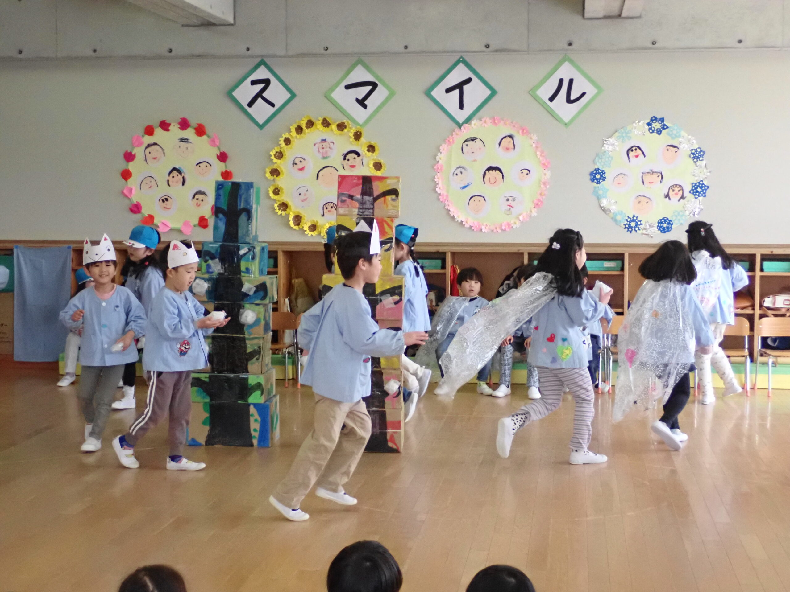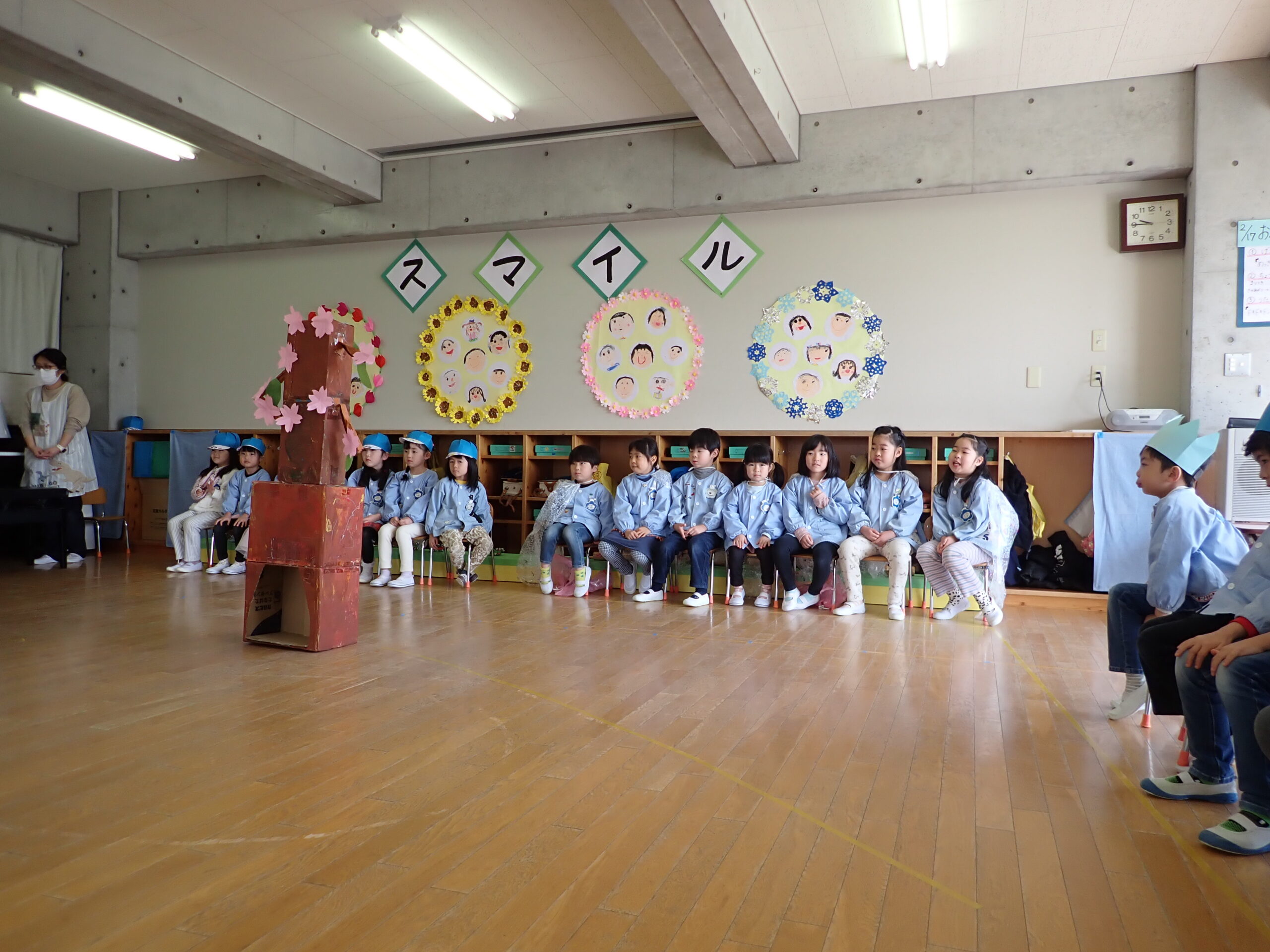 まずは年長組から「めっきらもっきらどおんどん」の劇遊びを見せてもらいます。