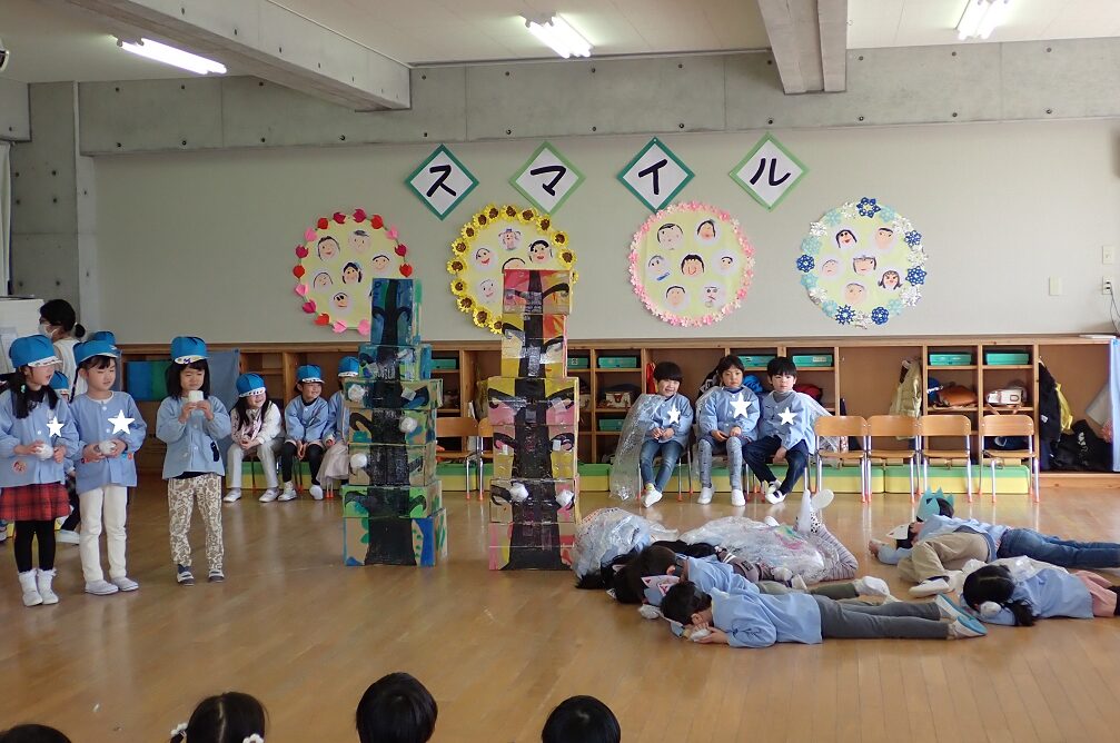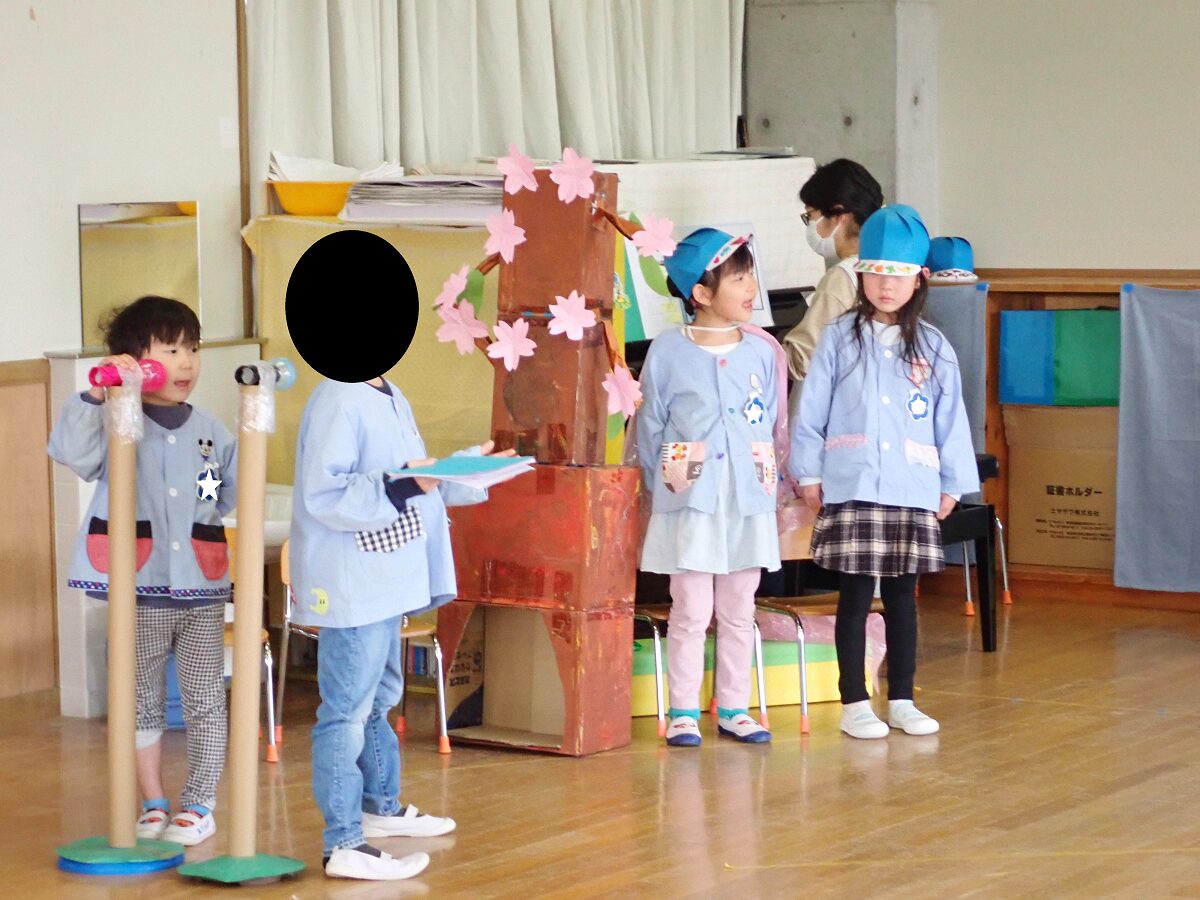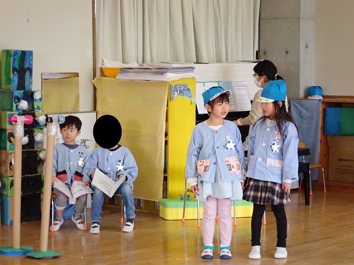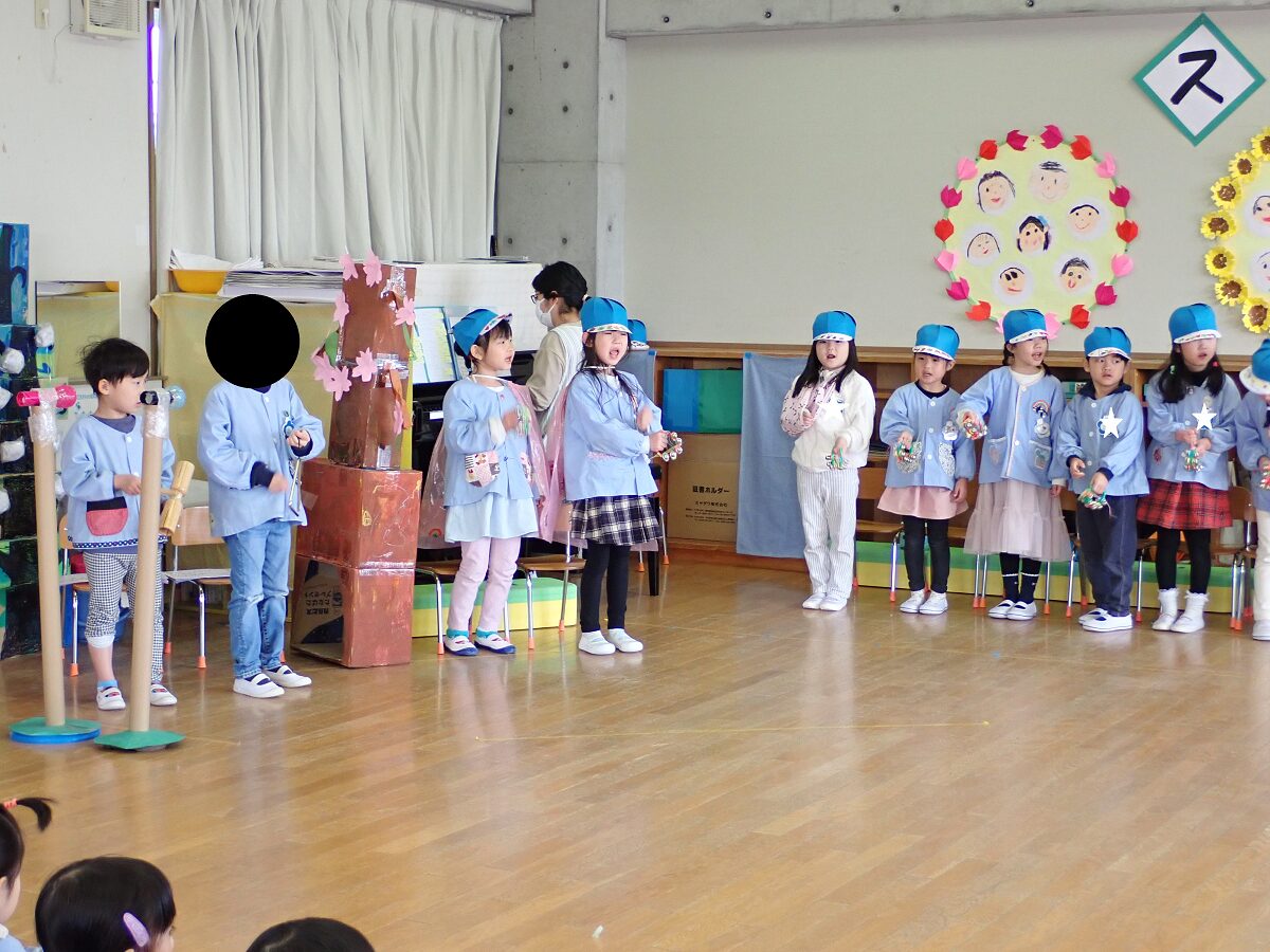 まずは年長組から「めっきらもっきらどおんどん」の劇遊びを見せてもらいます。