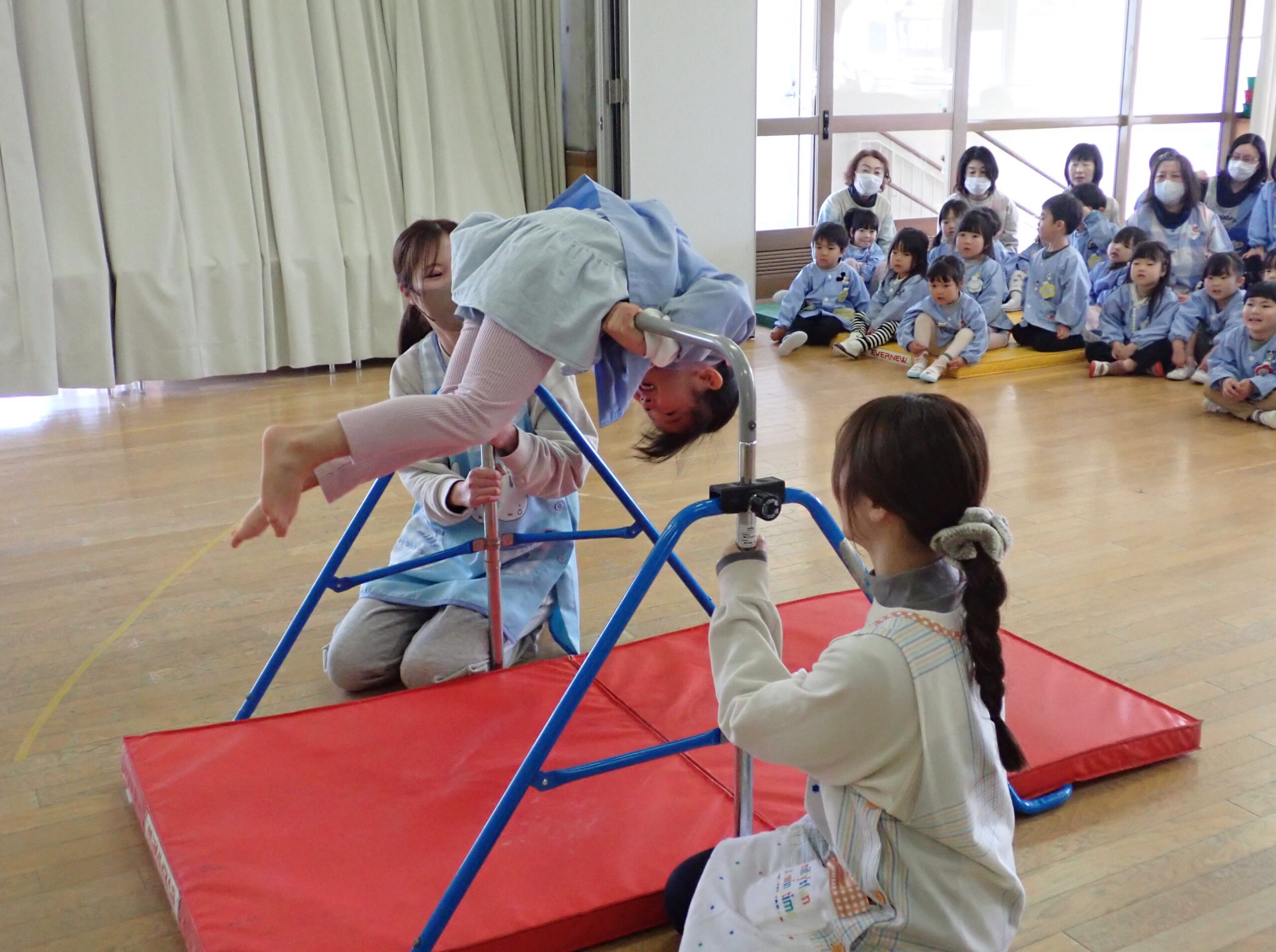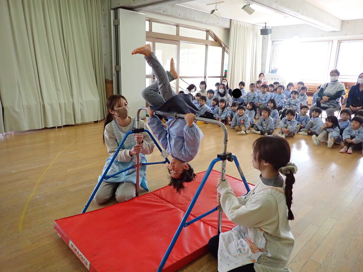 次は年長組がいろいろな「挑戦」をしているところを見せてもらいます。