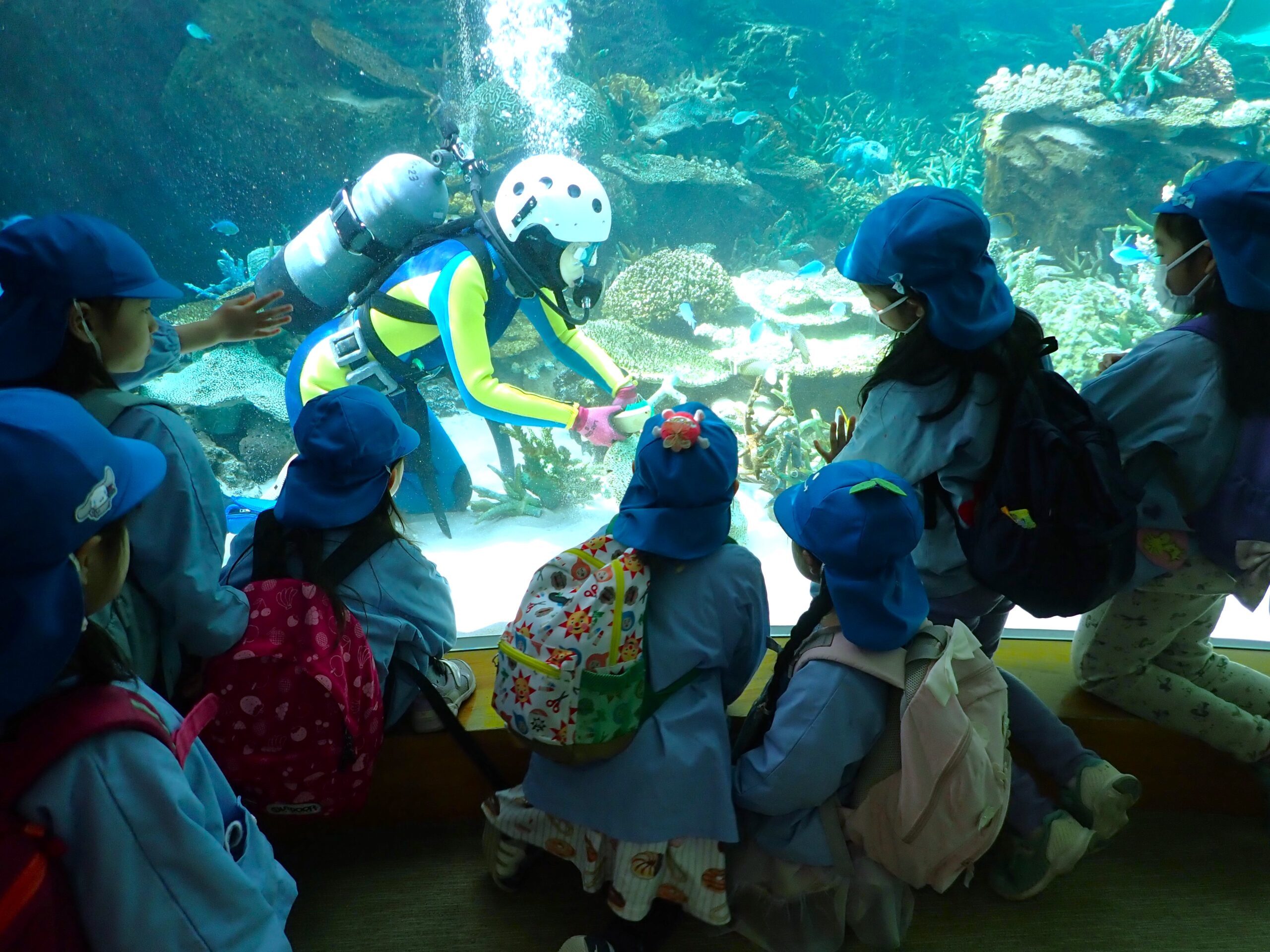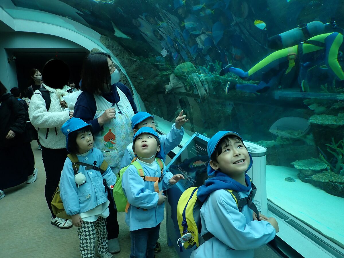 行先は名古屋港水族館。地下鉄太閤通駅に集合してさあ出発!お休みなしの全員出席です。