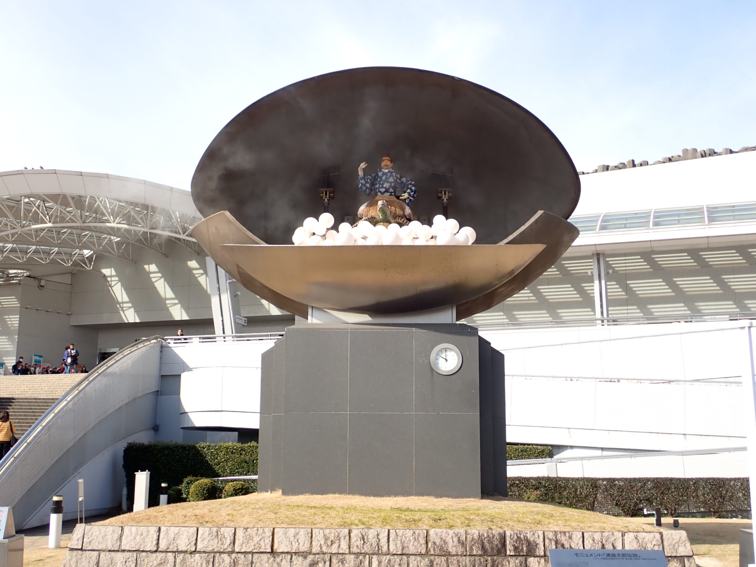 水族館に向かう途中で、からくり時計が動き出し子どもたちも興味津々。煙と共に登場した浦島太郎をじっくり見ることができましたよ。