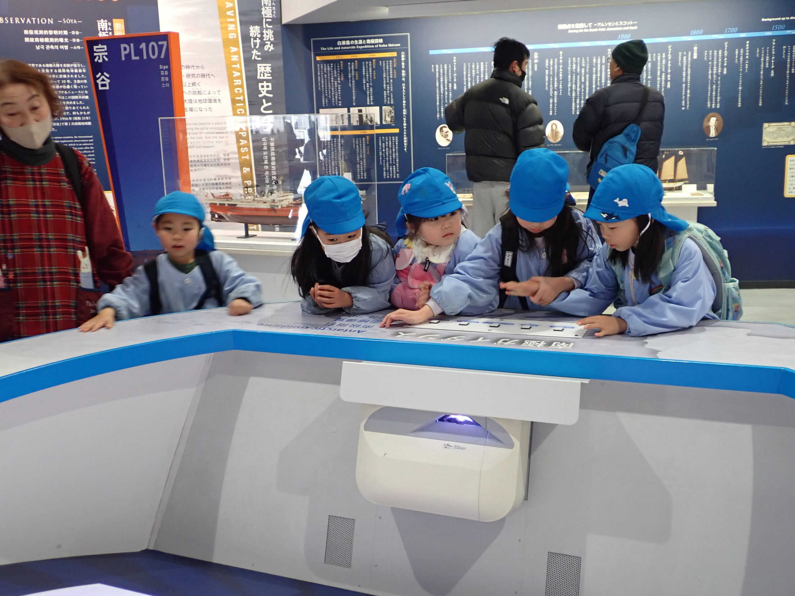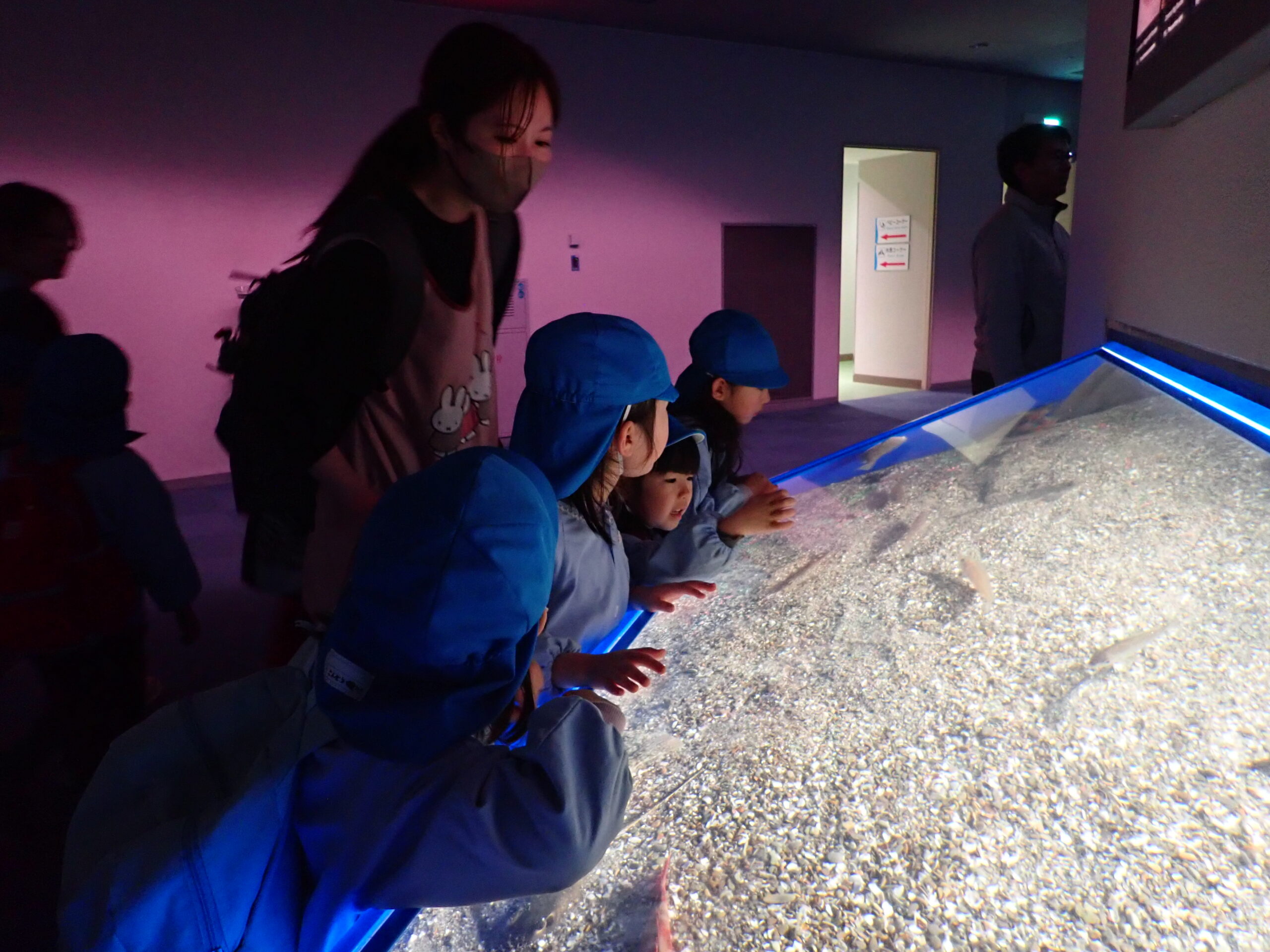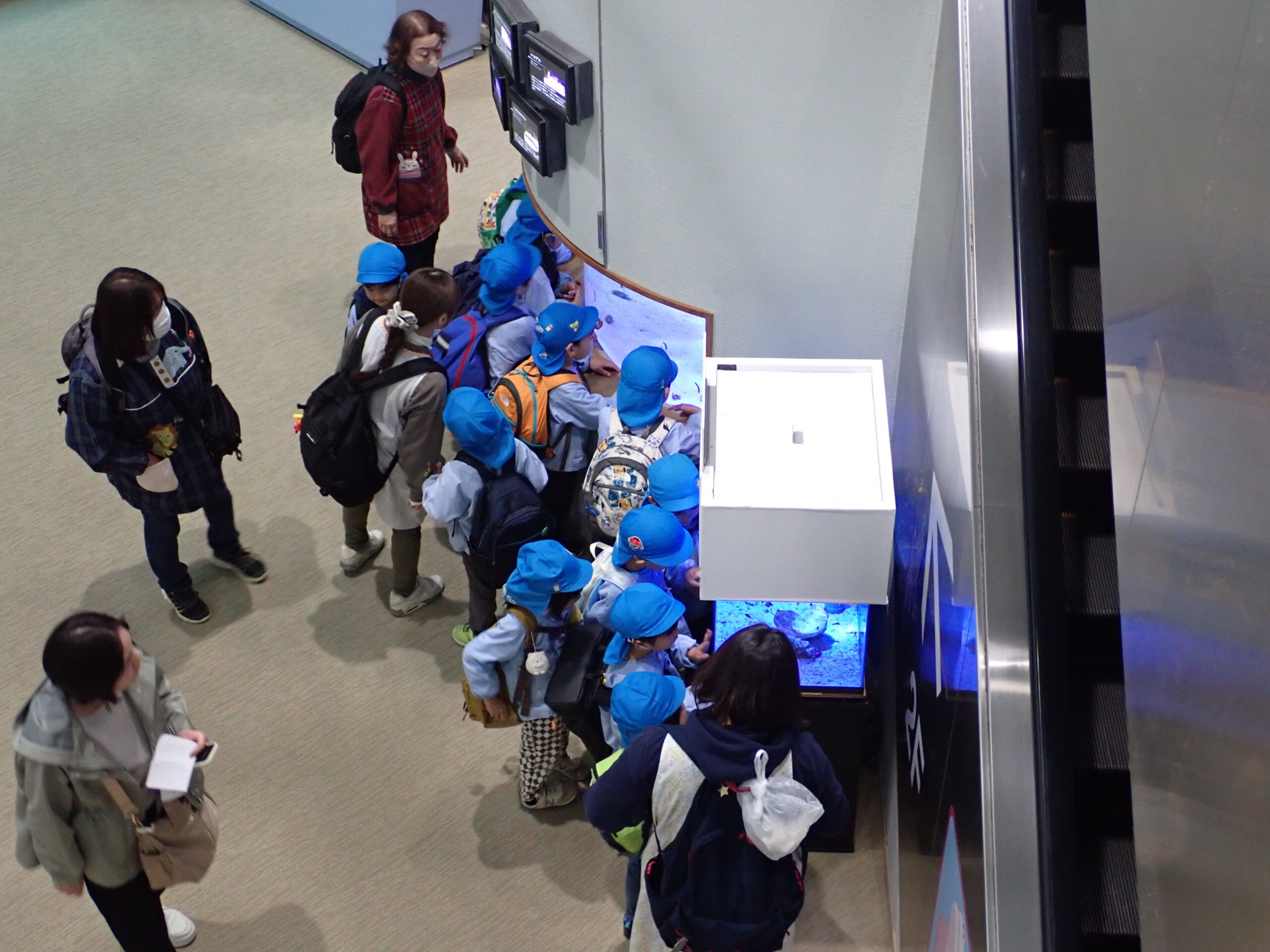 この日は大勢の来園者や遠足の団体も多くいたので、6つのグループに分かれで館内を見て回ります。