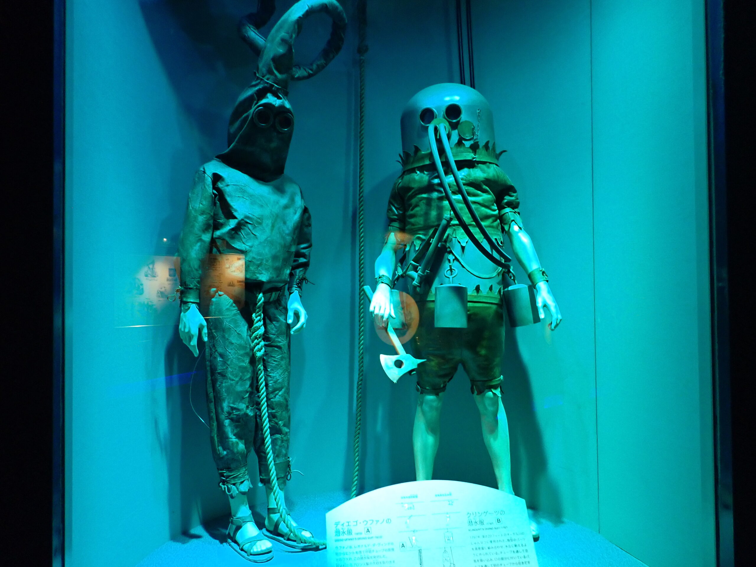 子どもたちが「怖い」という昔の潜水服。