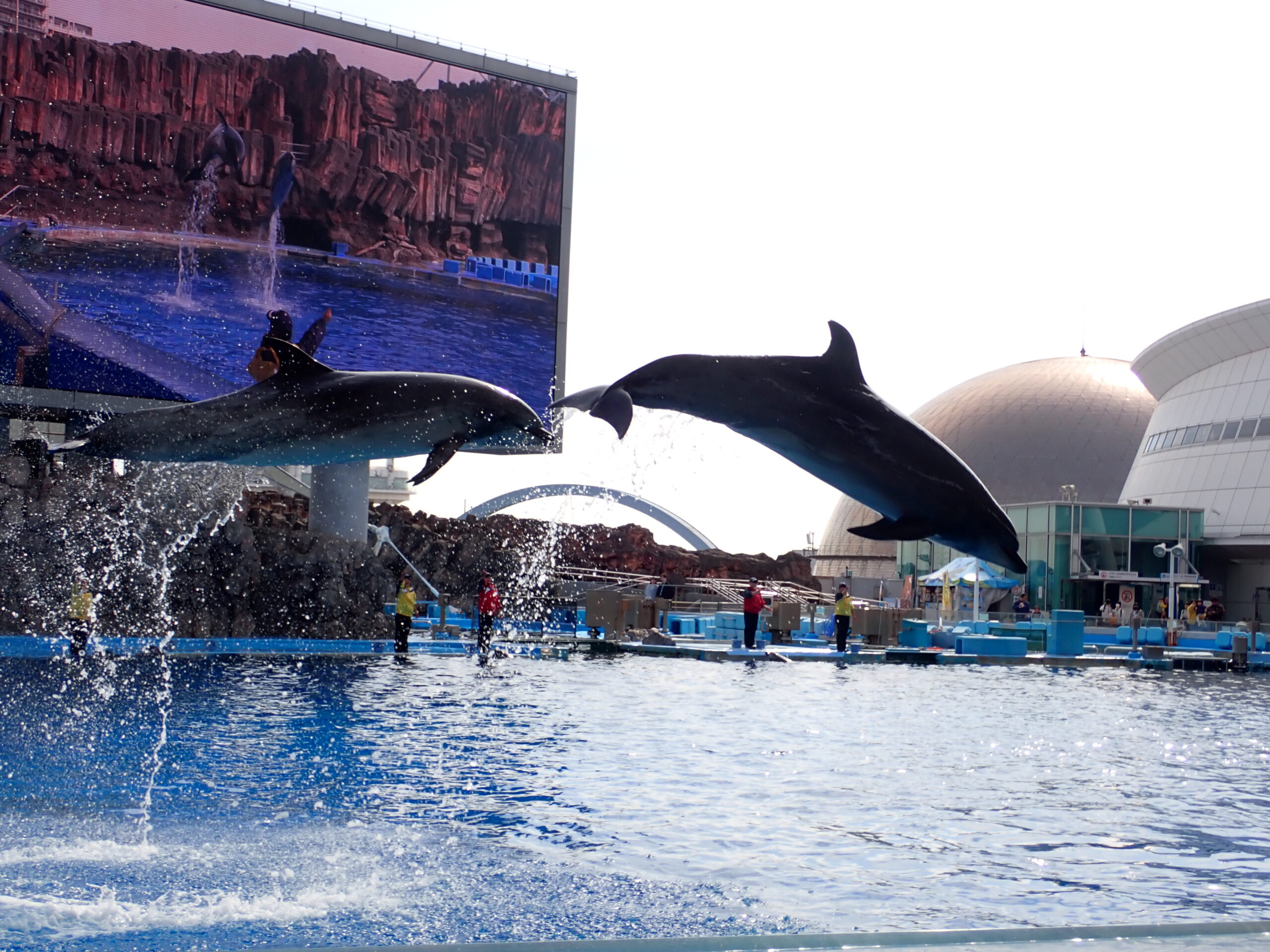 子どもたちも楽しみにしていたイルカショー。ダイナミックにジャンプする姿や、回転したり尻尾を振ったりして拍手喝采でした。