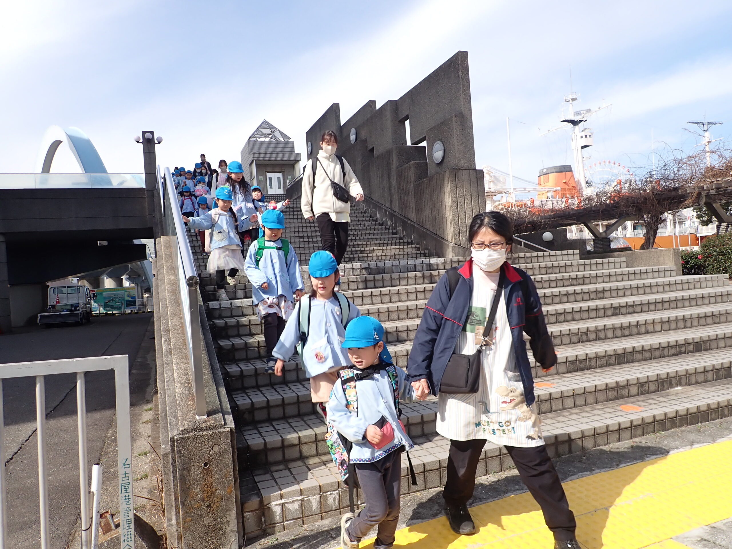 公共交通機関での遠足も6回目なので乗り換えもスムーズで、無事名古屋港駅に着きました。