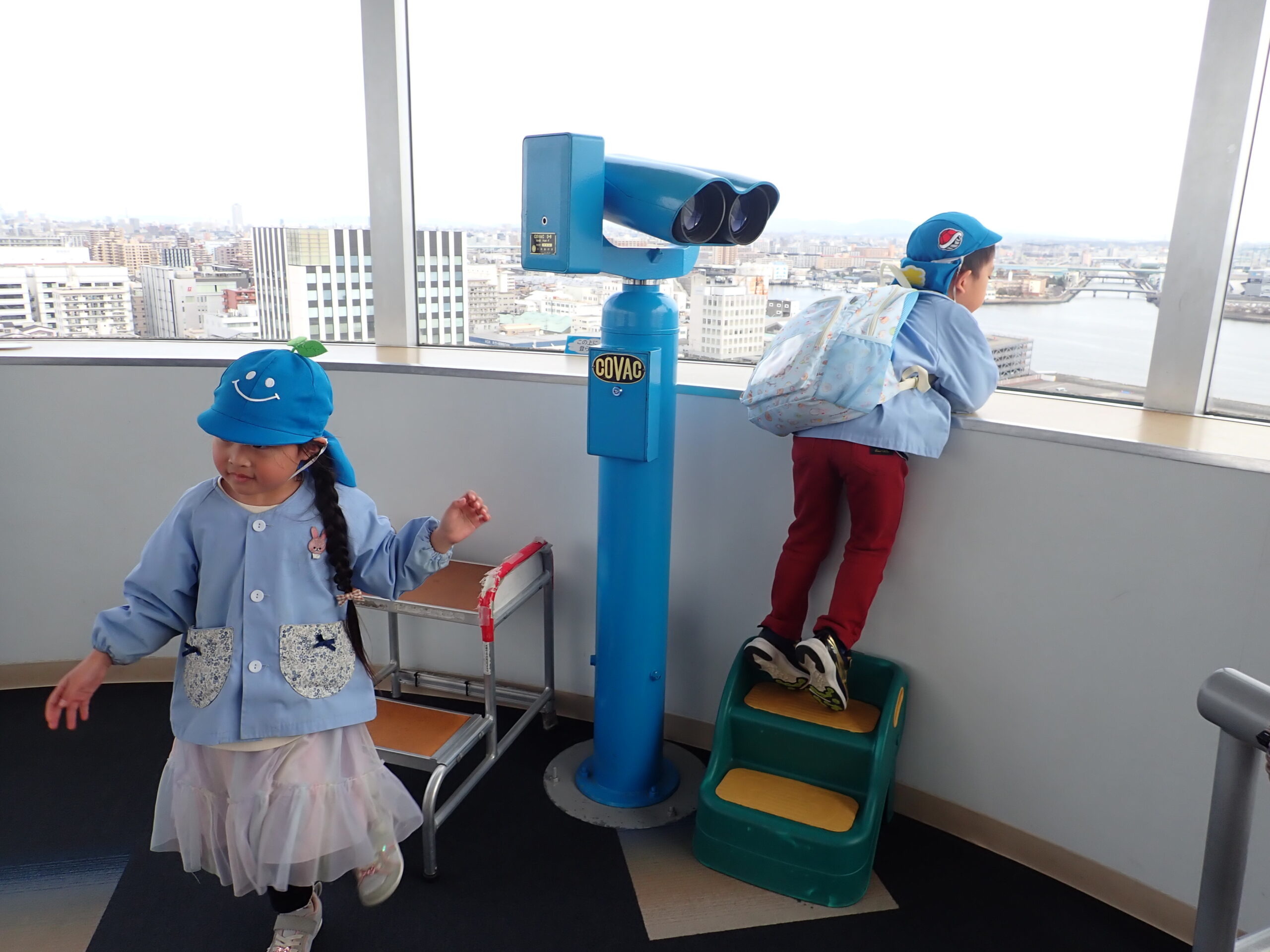 食後はポートビルの展望台へ。360度見渡せる景色に子どもたちも大興奮。